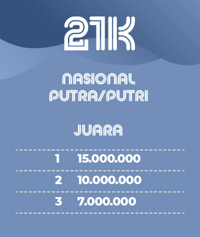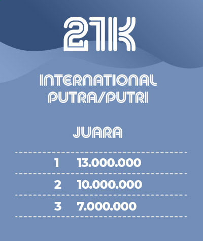 - 21K, terbuka bagi pelari perorangan Internasional, Nasional dan Master Nasional (berusia 40 tahun ke atas)